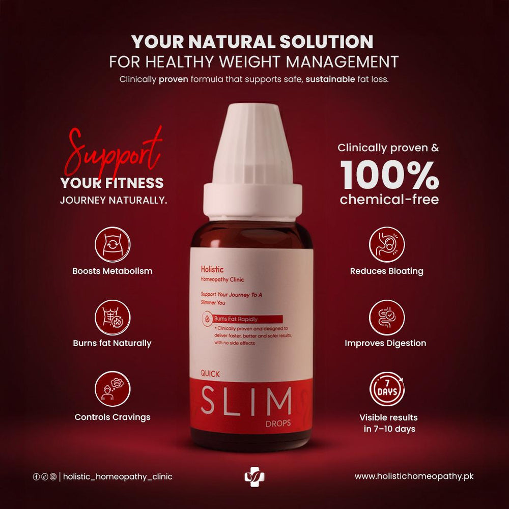 Quick Slim Drops is a natural wellness formula designed to support healthy weight management by boosting metabolism, improving digestion, and helping control appetite. Its carefully selected ingredients work gently with your body to promote gradual, sustainable slimming — without harsh stimulants.
